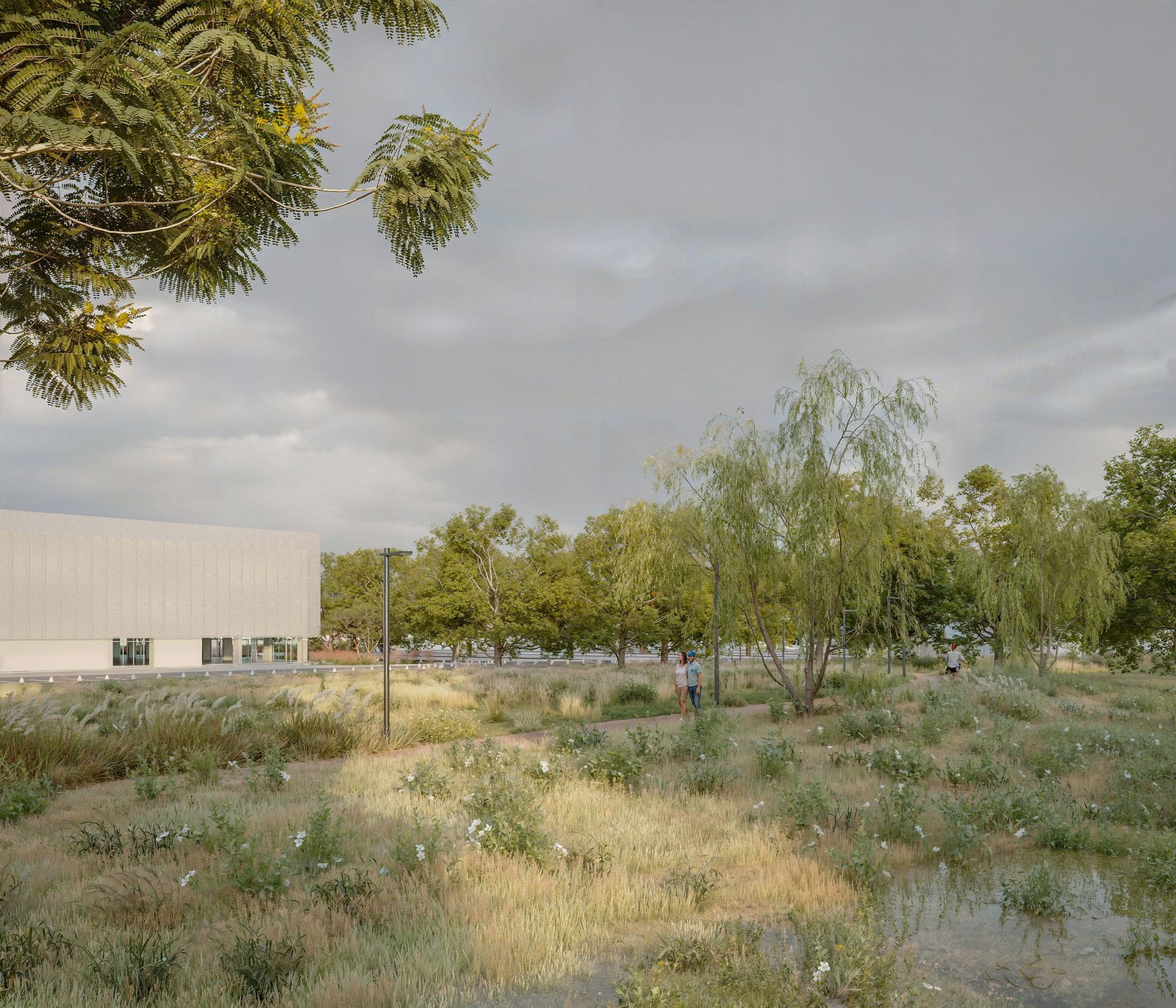 El proyecto propone un cambio de paradigma en la definición de las infraestructuras urbanas de protección hídrica, ya no solo se conciben como áreas subordinadas a un evento climático, sino que se piensan como un parque que conjuga lo funcional y recreativo asociado a soluciones basadas en la naturaleza (SBN). Se abandona la mirada consagrada de territorios de sacrificio en pos de estrategias que articulan beneficios ecosistémicos de grandes parches urbanos de vegetación nativa, superficies absorbentes y filtrantes, áreas de esparcimiento y deportivas, a la vez que dichas infraestructuras informan sobre la temporalidad misma del agua como elemento configurante y modelador del territorio; interpelando a la comunidad sobre la relación territorio-ciudad, ecosistemas-infraestructuras.