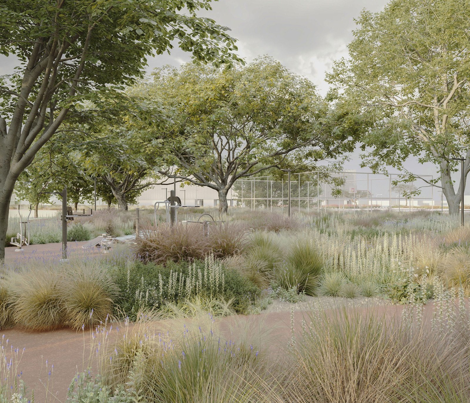 El proyecto propone un cambio de paradigma en la definición de las infraestructuras urbanas de protección hídrica, ya no solo se conciben como áreas subordinadas a un evento climático, sino que se piensan como un parque que conjuga lo funcional y recreativo asociado a soluciones basadas en la naturaleza (SBN). Se abandona la mirada consagrada de territorios de sacrificio en pos de estrategias que articulan beneficios ecosistémicos de grandes parches urbanos de vegetación nativa, superficies absorbentes y filtrantes, áreas de esparcimiento y deportivas, a la vez que dichas infraestructuras informan sobre la temporalidad misma del agua como elemento configurante y modelador del territorio; interpelando a la comunidad sobre la relación territorio-ciudad, ecosistemas-infraestructuras.